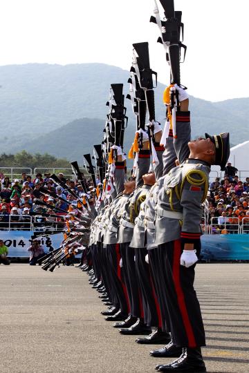 의장대가 절도 있는 시범을 보이고 있다.