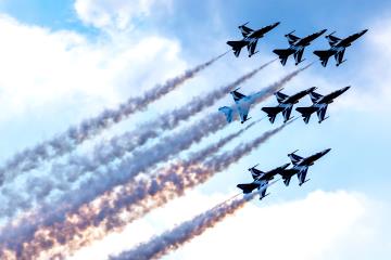 전투기의 에어쇼가 맑은 하늘을 수놓고 있다.