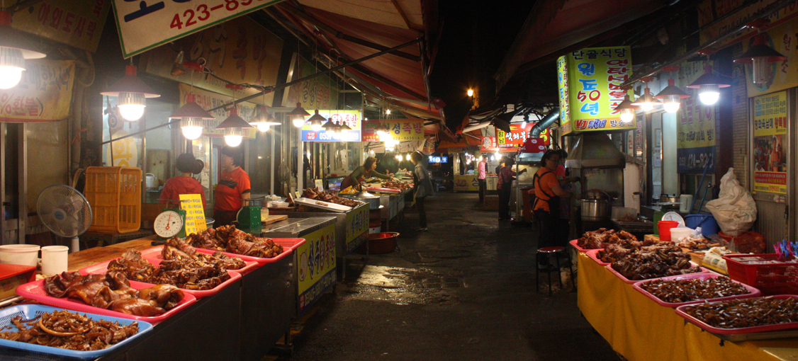 몇 시간을 솥 안에서 푹 고와 때깔도 곱다. 꺼질 줄 모르는 전구 밑에서 탱글탱글한 속살이 허기를 부른다.