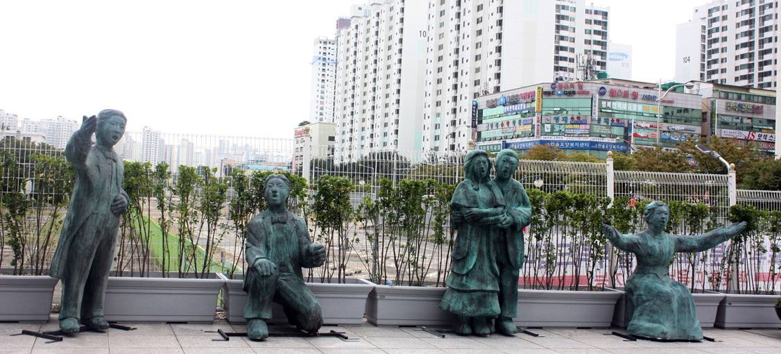 염색공장이 즐비한 곳, 굴뚝 하나에서 연기가 피어오른다. 이제 막 색이 물들기 시작한 듯 연기가 두텁다.