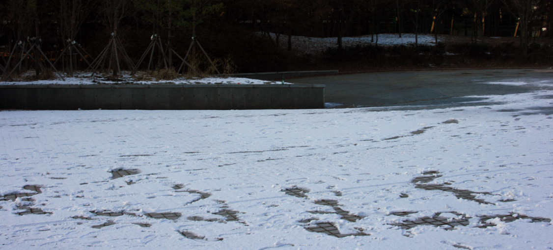 쌓인 높이에 비해 의외로 낮은 그림자. 그래도 쌓였기에 만들 수 있는 그림자.