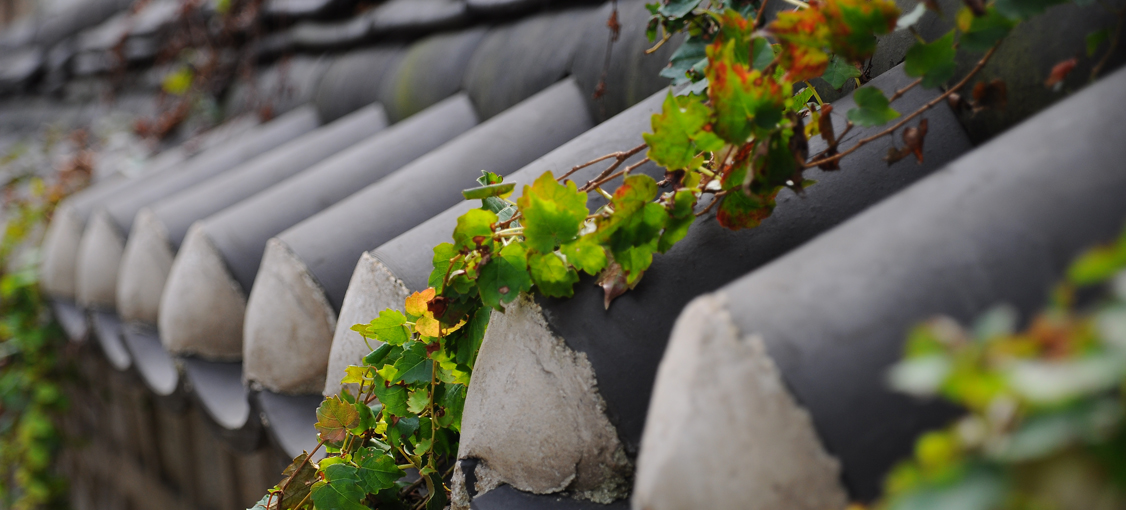 가지런한 담장 사이로 푸른 것이 흐른다. 떨어질 듯 떨어지지 않는, 묘한 긴장감.