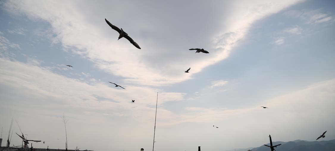 뱃고동 소리에 놀라 뛰어든 갈매기가 허공을 가르며 나아간다. 다시는 돌아오지 않을 것처럼