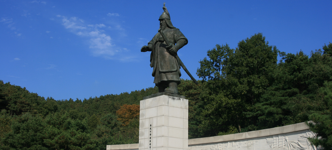 창해 만큼 푸른 하늘 아래, 장군의 시선이 먼 바다를 향하고 있다.