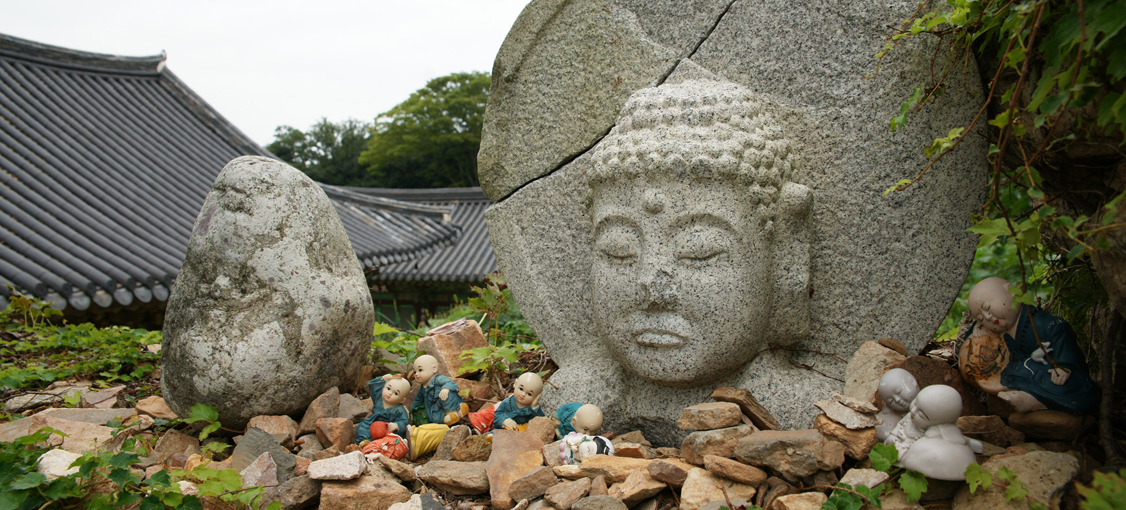 오래된 얼굴이 조용히 눈을 감았다. 이끼와 함께 낡아가는 고즈넉한 풍경.