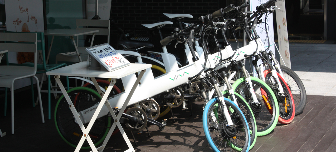 색색의 바퀴들이 구르는 순간을 기다리고 있다. 어떤 꿈이 오를지, 어떤 얼굴로 페달을 밟을지.