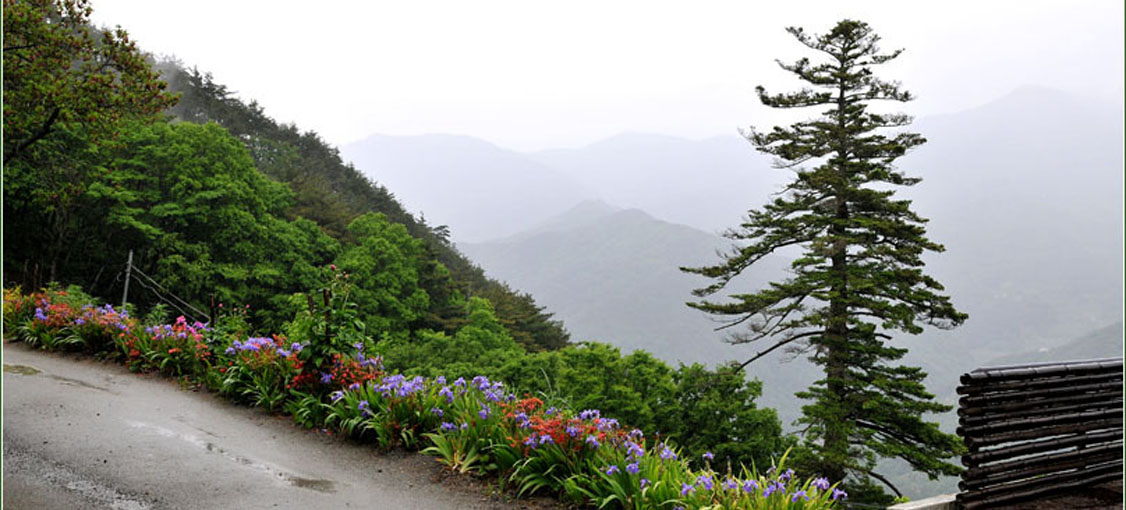 길가를 따라 핀 꽃을 보며 미소를 그리다 우뚝 솟은 전나무 한 그루를 보았다.