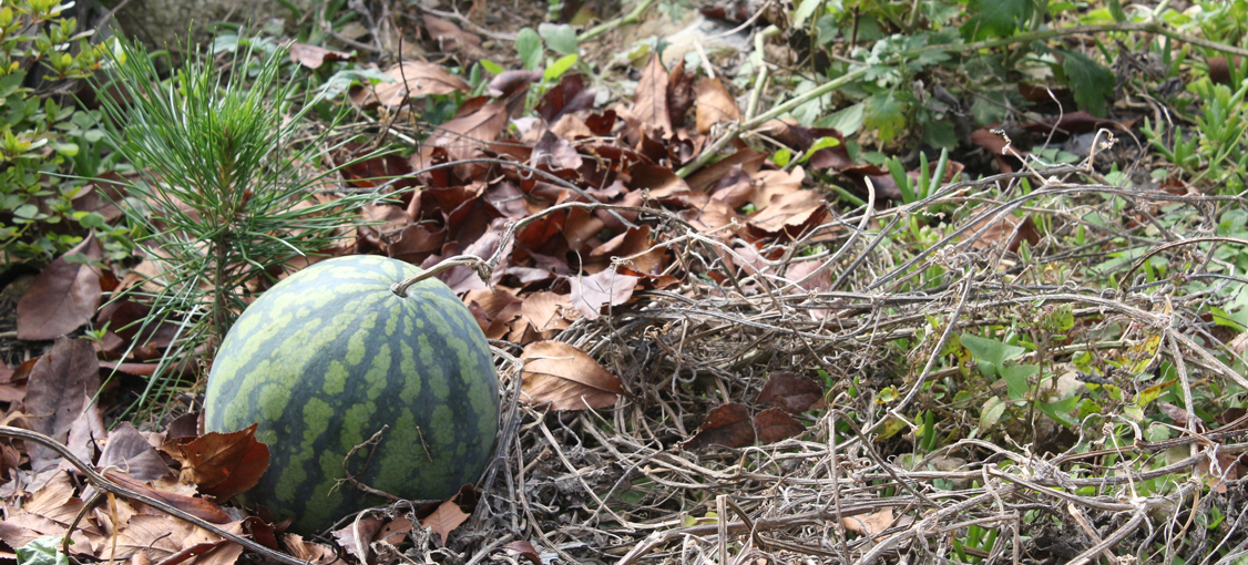 젖줄 같은 넝쿨 끝에 덩그러니 놓인 수박 하나.