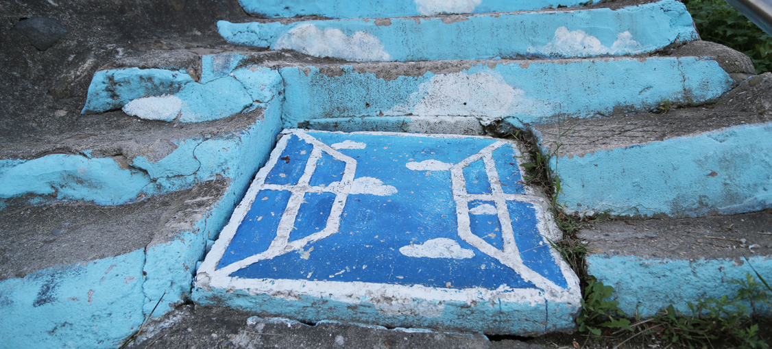 누군가의 재치가 바닥에 창을 내었다. 오르는 계단을 따라 고운 구름이 펼쳐지니, 어느 곳을 보아도 모두 하늘이다.