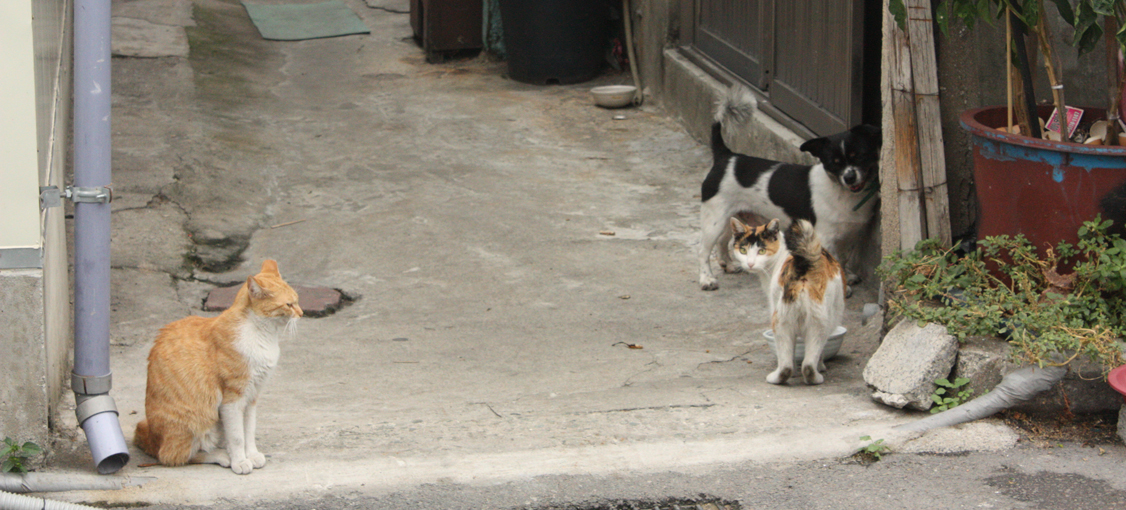 아무도 없는 줄 알았는데 골목에서 만난 귀여운 나그네 셋. 인사나 좀 나눌까 했더니 물끄러미 쳐다보기만 한다.