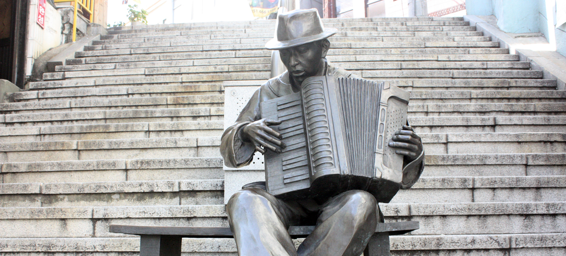 중간에 앉아 멜로디언을 들고서 굳어버린 한 남자를 보았다. 살짝 벌린 입술 사이로 어떤 노랫말이 흘러나올지 영원히 기다려질 것만 같은.